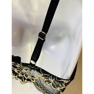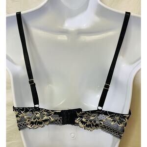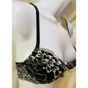 Rene Rofa Bra Used Underwire Padded 34B Black Beige Floral Lace Pushup Sexy