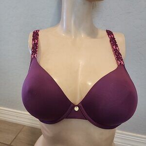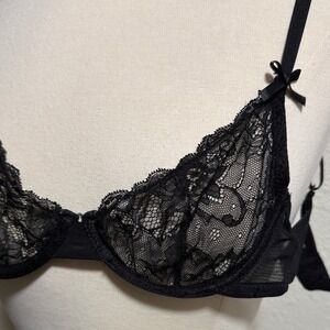 Rene Rofe Black Sheer Floral Lace Underwire Demi Bra with Bow Accents S/M