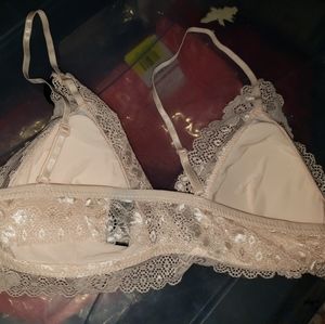 A new Rene Rofe bra. Pretty beige color. Very soft for comfort. Pretty place trim. Brand new, never worn with tags. Size L will fit sizes 28-32 A cups and smaller B cups. Original pricing $28