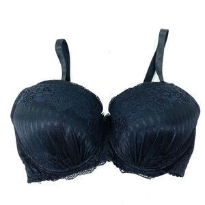 Rene Rofe Bra Black Lace Convertible Demi 38 D Underwire Pushup Padded Sexy
