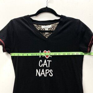 Rene Rofe Cotton Sleepshirt Pajamas, Sz Small, Black w "I Love Cat Naps" Graphic