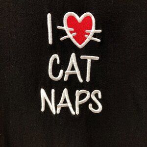 Black with "I Love (Heart) Cat Naps" graphic in red and white embroidery