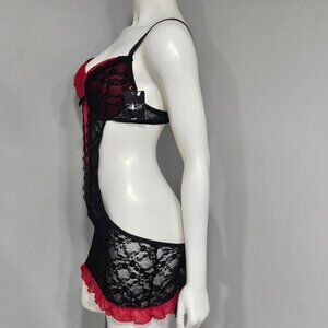 Rene Rofe French Maid Apron Lingerie Black and Red