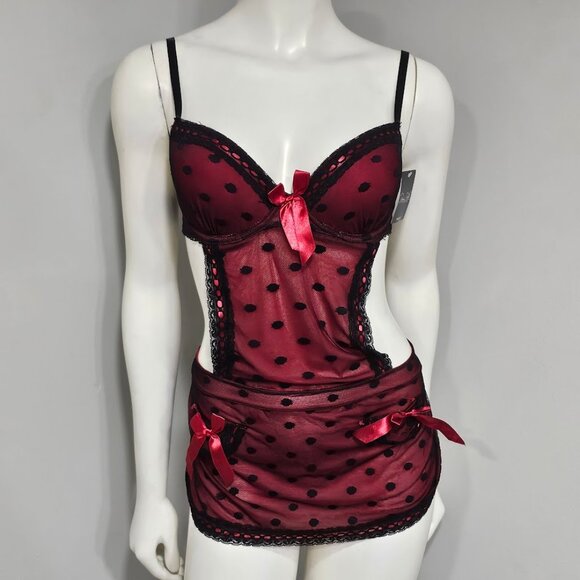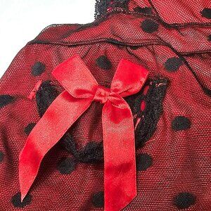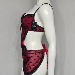 Rene Rofe French Maid Polka Dot Sheer Babydoll Apron Lingerie