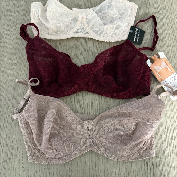 Rene Rofe Lace Bra Trio - Cream, Burgundy, Taupe