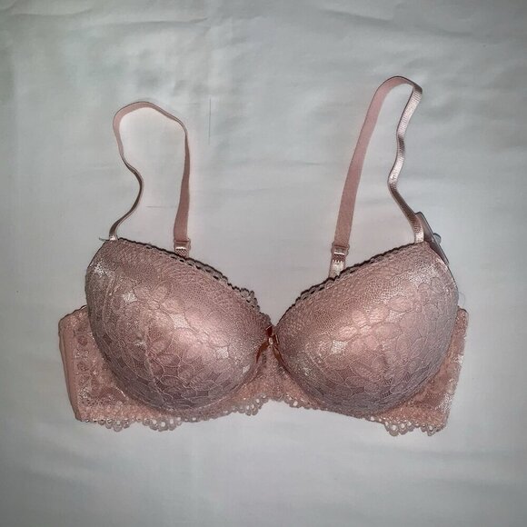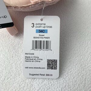Rene Rofe Lace Pink Bra 34C Extreme Push Up Floral NWT
