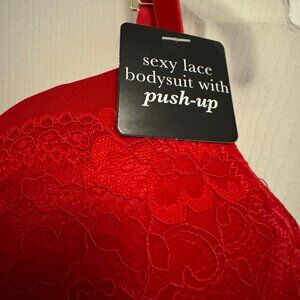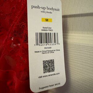 Rene Rofe Lingerie Women's push-up Bodysuit with j-hooks 308829 Red NEW w TAGS