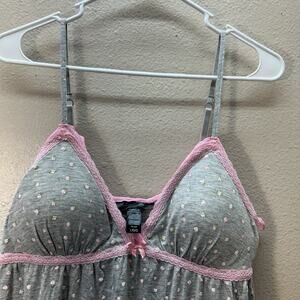 Rene Rofe Pajama Set Babydoll Camisole Chemise Floral Tank Top Padded Gray Sz L