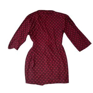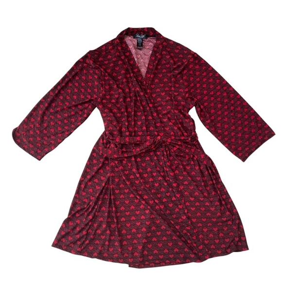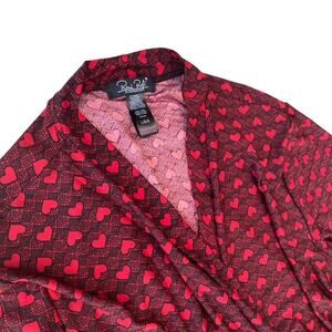 Rene Rofe Red and Black Heart Pattern Silky Robe - Large