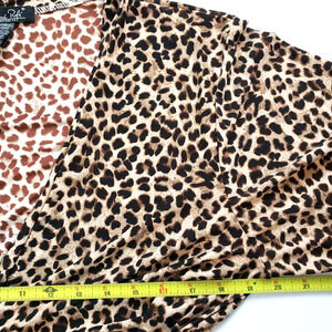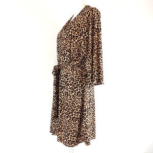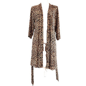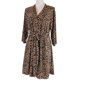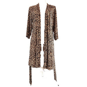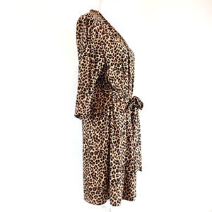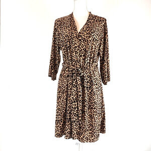 Rene Rofe SIZE L Brown Cheetah Animal Print 3/4 Sleeve Tie Sleepwear Short Robe