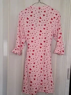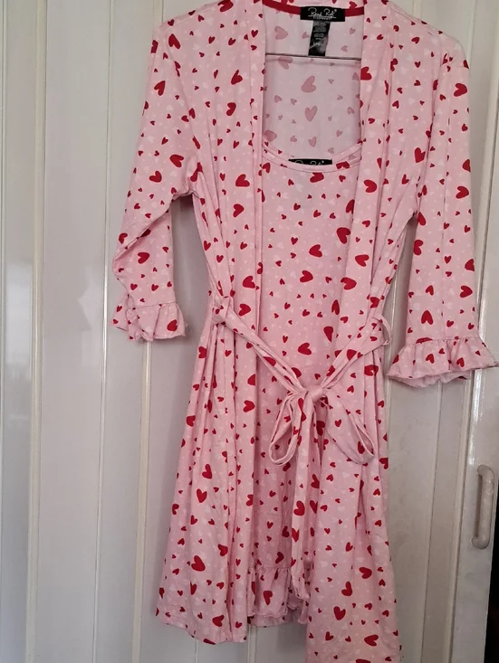 Rene Rofe sleepware set size Small. Spaghetti strap nightgown. Tie front robe. Heart pattern. EUC