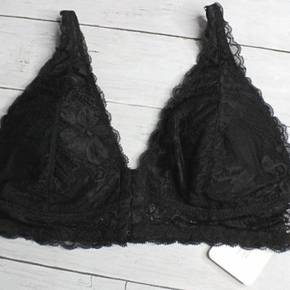 Rene Rofe Women's Black Lace Bra Size M Padded Wire Free Front Hook