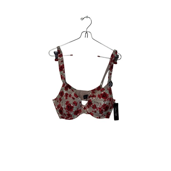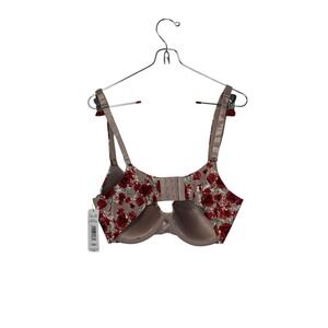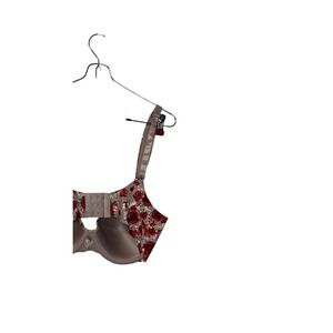 Rene Rofe Women's Bra Floral Red Strap Back Smoothing Padded Underwire 36D NWT