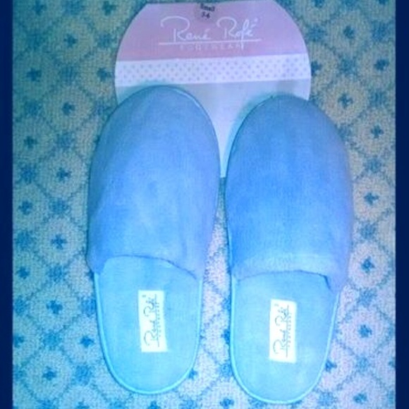 Beautifully designed Rene Rofe very soft comfy blue and white house slippers shoes size small 5/6. They are a must have. Hard to find.