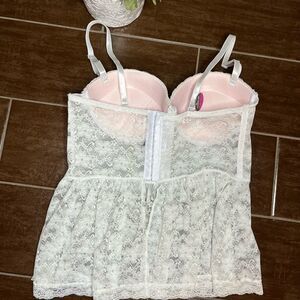 Rene Rofe white lace long flowy push up bralette sz large