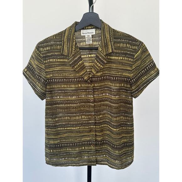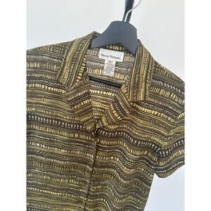 Rene Rowan Short Sleeve Button Down Olive Green Patterned Top Size 6
