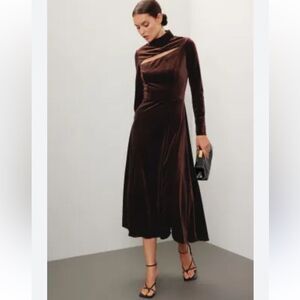 Rene Ruiz Collection Chocolate Brown Velvet Cut Out Midi Dress Long Sleeve Sz. 6