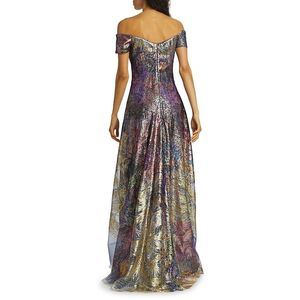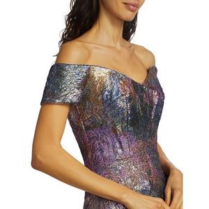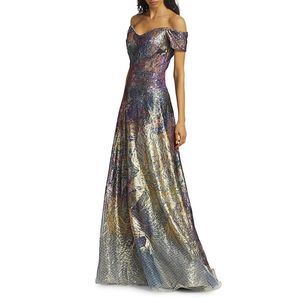 Rene Ruiz Collection Sequin Off-The-Shoulder Gown