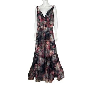 Rene Ruiz Collection V Neck Printed Organza A-Line Gown Women’s Sz 14