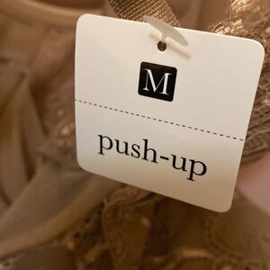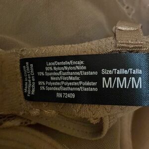 Rene rofe lingerie bodysuit push-up medium tan color brand new with tags 13 inches across band under boob adjustable straps 30 inches long from strap to bottom snap buttons