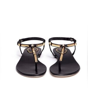 Rene Caovilla Metallic Gold-Tone & Crystal Embellished Flat Sandals size 39 (size 9 see size chart). Minimal wear on shoes and soles.
