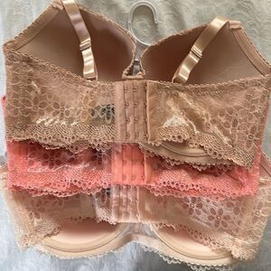 Rene Rofe Women's Demi Lace Bra Set - Pink and Rose and Beige Size 38DD