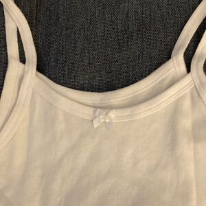 Rene Rofe girls set of 2 cotton tank tops/undershirts in white with thin straps and bow in center of neckline.