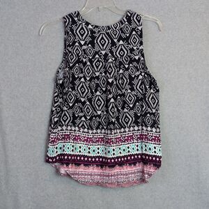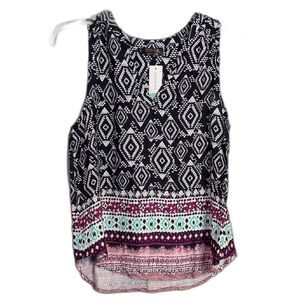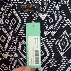 Renee C Abourne Split Neck Top Sleeveless Navy Rayon Women's L NWT