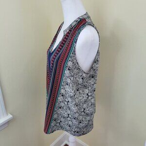 Renee C Blouse Vibrant Geometric Print Multicolor Sleeveless V-Neck Top Size L