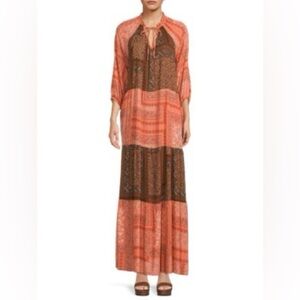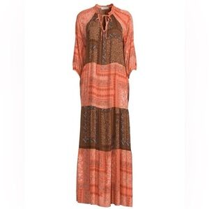 Renee C - Color Block Boho Tiered Three Quarter Sleeve Maci Dress Size Small