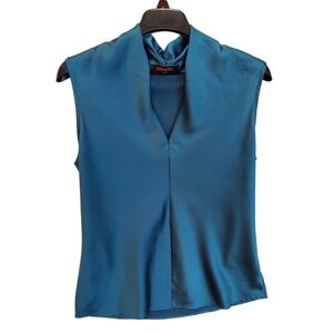 Renee C. Sleeveless Blouse Womens Teal Blue New Tank Top Silk Vest Pullover