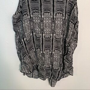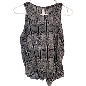 Great condition, minor wear. Renee C. Stitch Fix. Linscott split back blouse. Sleeveless. Crewneck. Black with white geometric pattern. Keyhole in back. 1314 TPV. missing size/material tag, my best guess is a small; please see measurements to ensure proper fit. Pit to pit laying flat 17” Shoulder to hem 25”. All measurements are approximate and taken lying flat. Smoke free home. No trades, offers welcome.