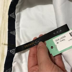 This skirt is new with tags! Fit and flare a-line style with stretch waist. Long modest length falls to the knee. Large bold navy blue polka dot print. Women’s size medium. 6.5.23 T