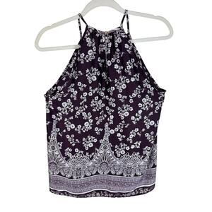 Renee C. Wine Purple White Floral Racerback Lightweight Tank Blouse Size M