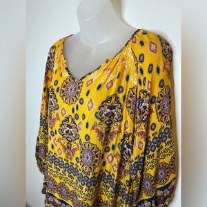 Renee C. Yellow Paisley Print 3/4 Sleeve Blouse Size Large EUC