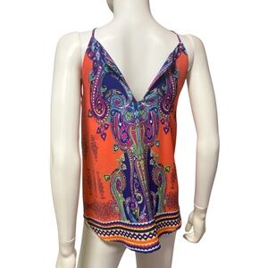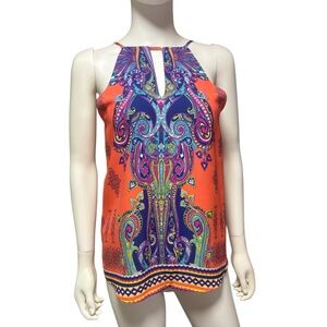 Renee C. orange Floral Paisley Halter Tank Top - size small