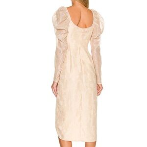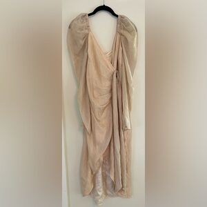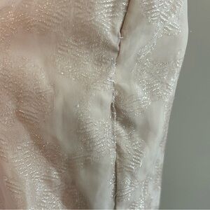 Small tear along long seam that was repaired (see photos), but definitely could be redone by a seamstress.