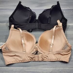Renee Rofe Bras Demi Lacy Lightly Padded Underwire Black Beige 36B