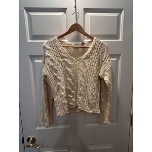 Renee Tener For Jeanne Pierre Hand Knit Cable Knit V neck Sweater Size Medium