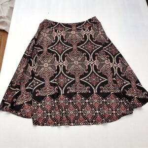 Reneec Flare A line Brown and Pink Paisley Print Skirt