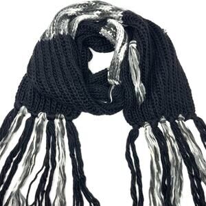 Renee's NYC Women's Soft Knit Wool Blend Scarf w/ Fringe in Black and White