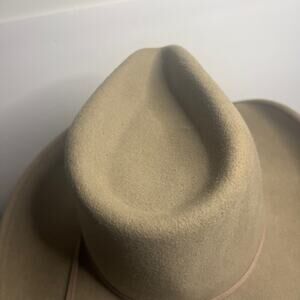 Light brown color, good condition. Does have bends at front and back, not sure if supposed to be that way. Size small, circumference around headband: 20.5".