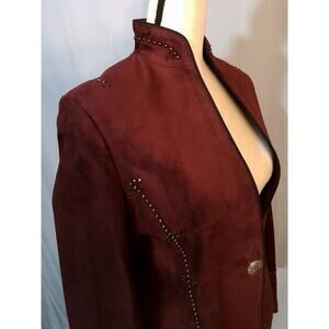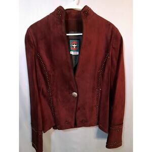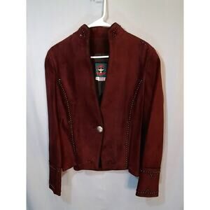 Burgundy Swade jacket by Renegade Spirt. Vintage Jacket is in excellent condition. Size S ”, (Approx. Measurements): Pit to Pit: 18”, Full Length: 23 ”, Sleeve:24”