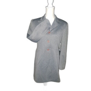 Renlyn New York Size 6 - lightweight with stretch- gray polyester Coat preowned in excellent condition. Faux pockets on the sides to keep a smooth finish and long splits along the side to add more drama and movement. Satin-lined, Brown large buttons.