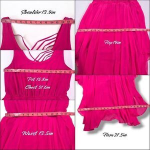 ☆Scoop neck V-cutout strappy back elastic waistband sheer ruffle midi dress.
