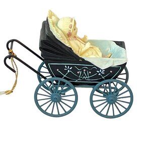 Renny’s Buggy a Tiny Treasure by Jan Hagara Porcelain Figurine Baby in Blue Metal Carriage Excellent Detail Baby's Fingers, Face Blanket Wheels Turn Adorable Cute New Baby Gift New Grandmother Gift Really Precious