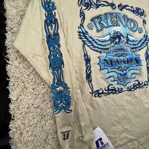 Reno Nevada Men T-Shirt Medium Beige Graphic 2013 Motorcycle Bike Rally 19th