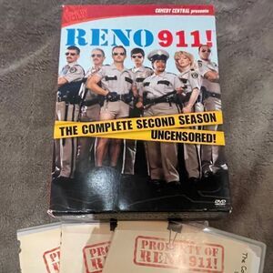 Reno 911! Second Season DVD Set – Get ready to laugh with the hilarious misadventures of the Reno Sheriff’s Department. This 3-disc set includes all 16 episodes from the second season, plus special features like outtakes and deleted scenes. Perfect for fans of outrageous comedy and law enforcement parodies. Discs are in great condition, with minimal wear on the case. A must-have for collectors or anyone looking for a good laugh!