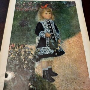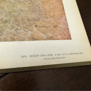 A beautiful vintage full-color reproduction print of painting "A Girl with a Watering Can" by Renoir.