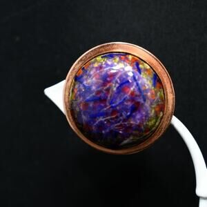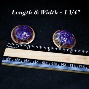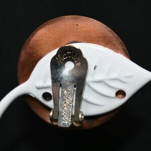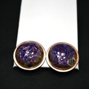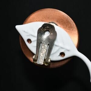Renoir Matisse Vintage Crackle Lucite Copper Clip Earrings, Designer 1 1/4 Inch